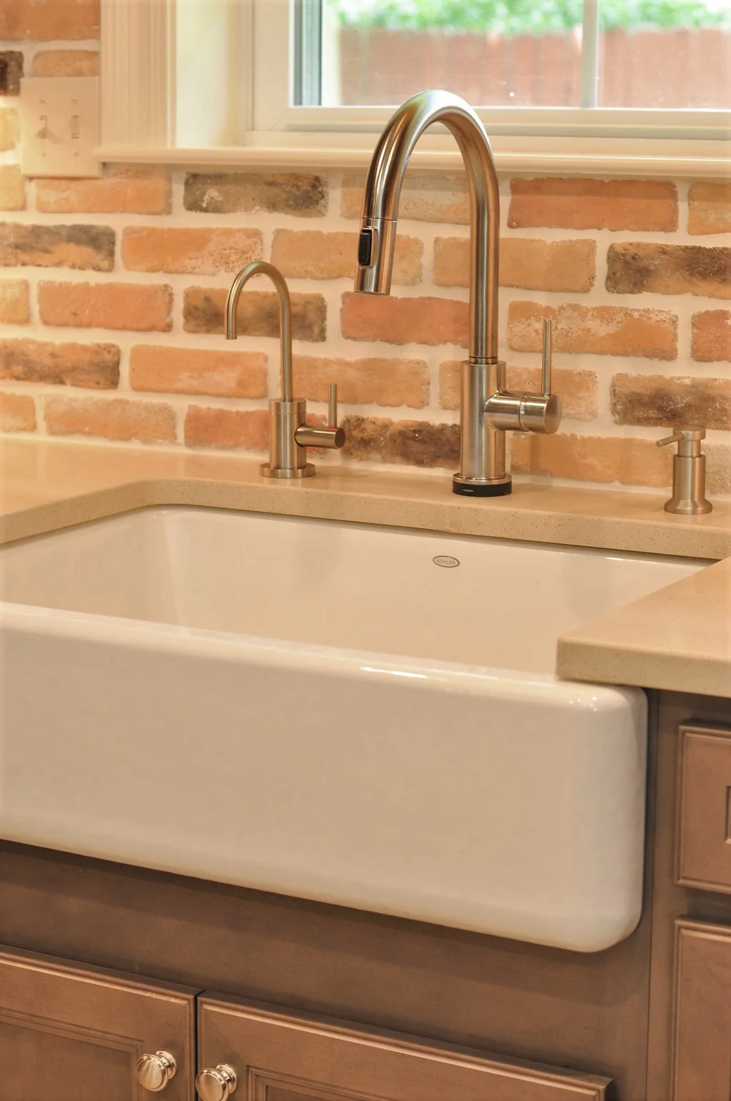 Josh and Audrey's kitchen had seen better days. The tile counter tops were falling off one by one and the cabinets were falling apart. The couple desired to have a kitchen that was unconventional but kept within the traditional style of the home. The brick back splash set the tone and the design blossomed from there. We left no stone unturned in the design and planning of the Hammond kitchen and utilized every square inch. The Hammond's long wish list is now a dream come true.